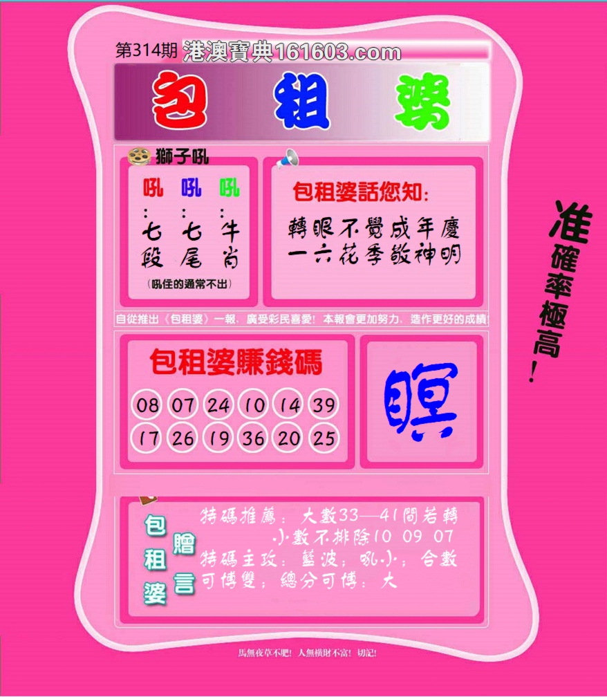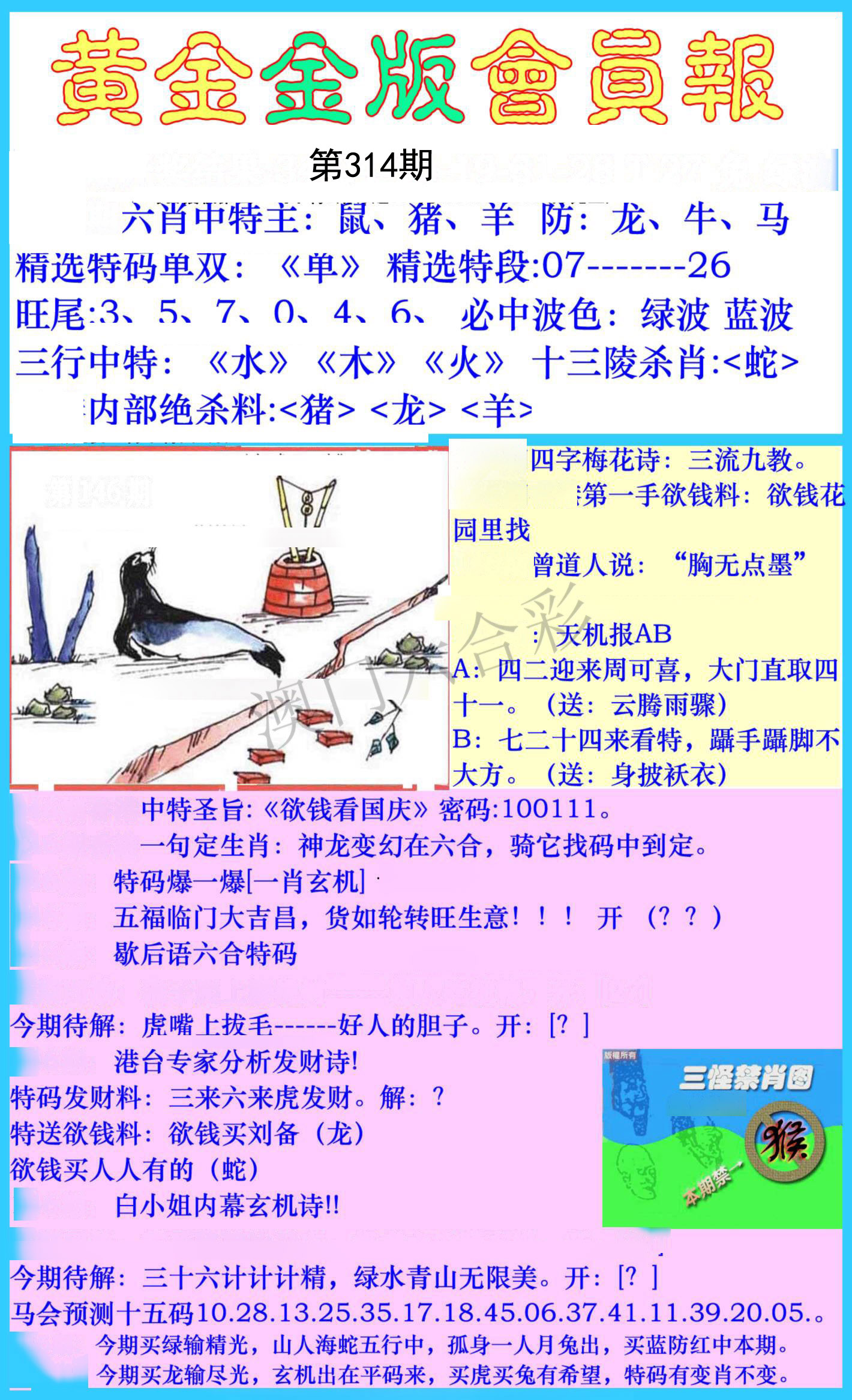 309期原创20码中特开:兔03 06,31,33,46,17,24,40,26,37,35 38,05,32,44,45,16,49,11,42,18 |