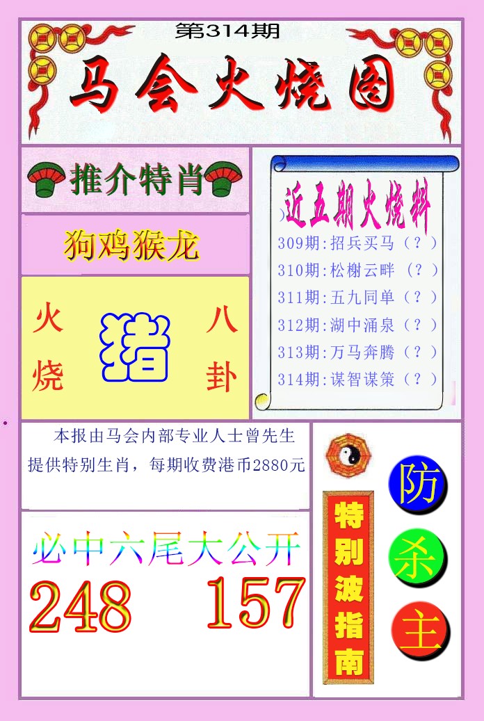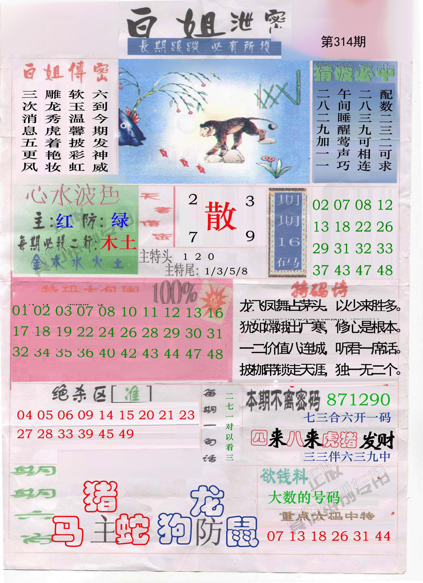 | 314期:《主攻:内幕规律平特肖:<狗>下50万》! | ||
