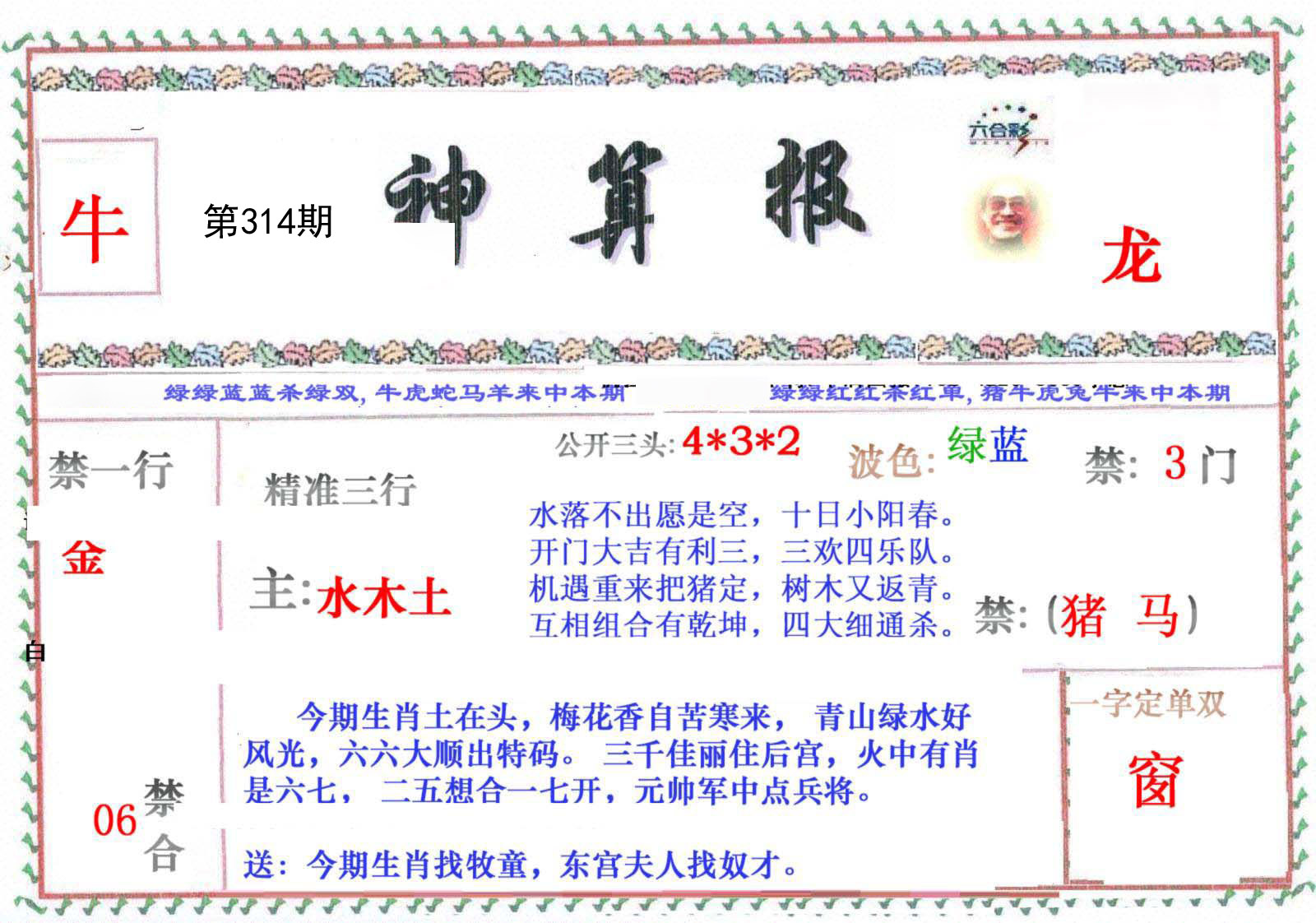 314期推荐六肖:<牛猪龙蛇狗虎>内幕资料请大胆下注! | ||